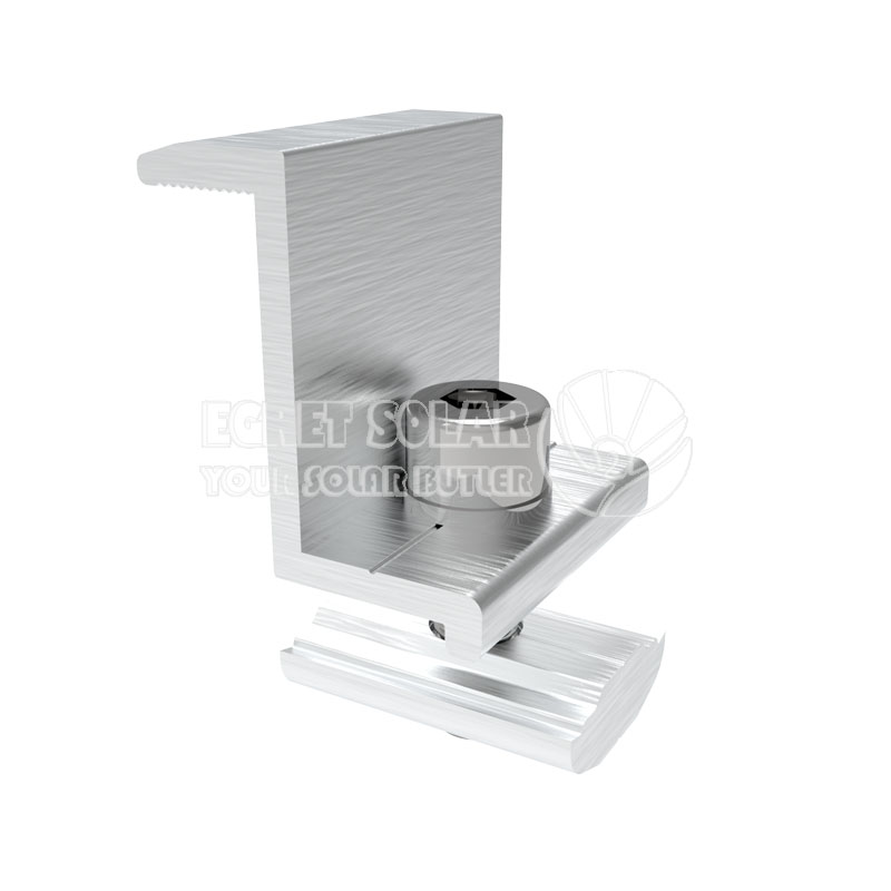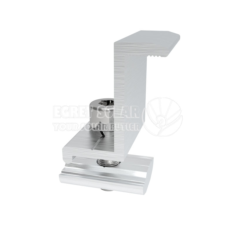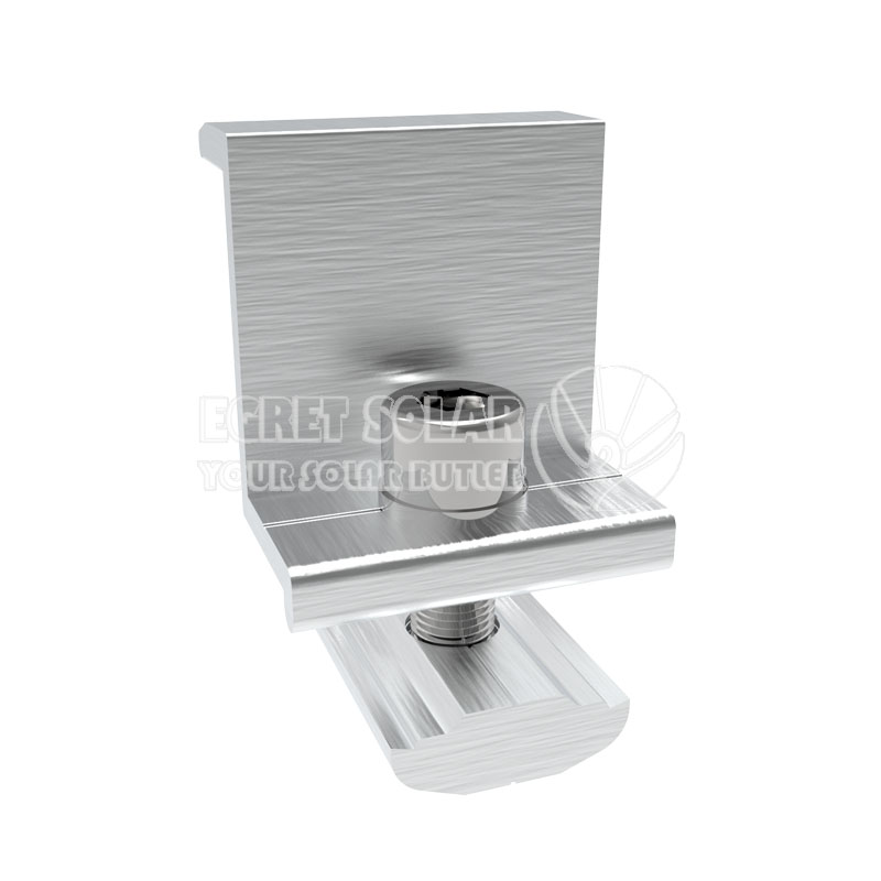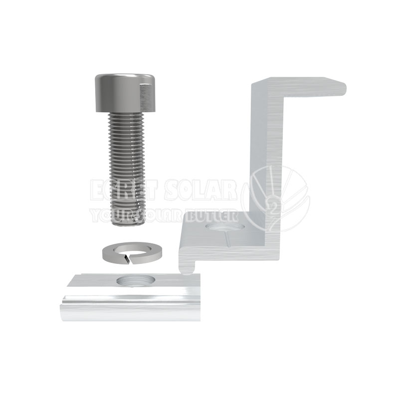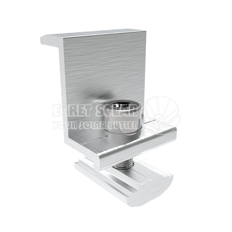 Кінцеві затискачі для алюмінієвих сонячних панелей Egret Solar мають різні розміри, придатні для панелей 30 мм, 32 мм, 35 мм, 40 мм. Це кріплення між сонячною панеллю та монтажною рейкою. Він складається з 4 частин: алюмінієвого кінцевого затискача, болта, гайки та пружинної шайби.