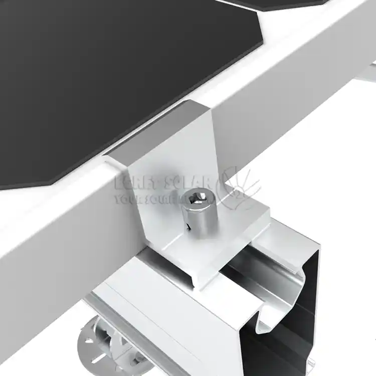 Установче положеннякінцевий хомут для сонячних батарейзнаходиться на початку та в кінці масиву, і лише зовнішня рамка одного модуля фіксується. Його основна сила в основному витримує найсильніше крайове навантаження від вітру з одного боку модуля, і в той же час відіграє роль фіксації клем, протистоячи екстремальному тиску вітру та ущільнюючи край. Зовнішній вигляд зазвичай має закритий один кінець або торцеву кришку.