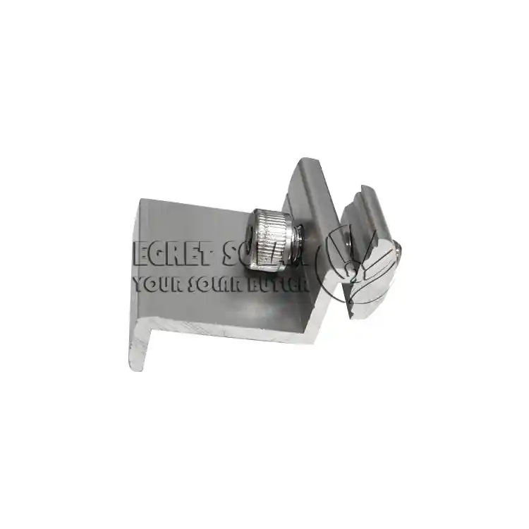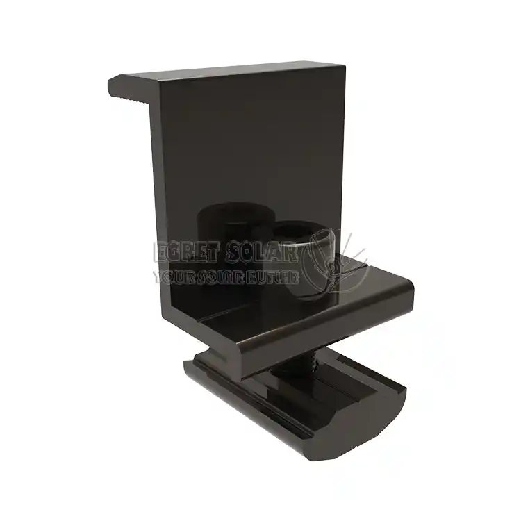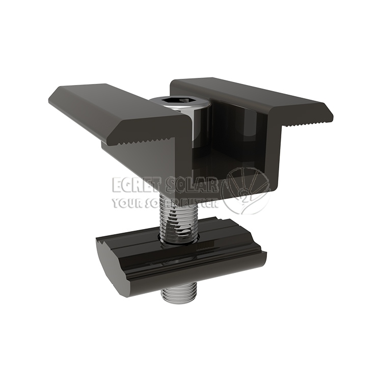 TheКінцеві затискачі зСонячна чапля, як і блок середнього тиску, має бути сумісним із товщиною рами компонента (зазвичай 30-40 мм). Це може бутиІндивідуальнийвідповідно до різних інженерних рішень, і він виготовлений з матеріалу з анодованого алюмінієвого сплаву, щоб уникнути корозії рами компонентів і одночасно відігравати ізоляційну роль.