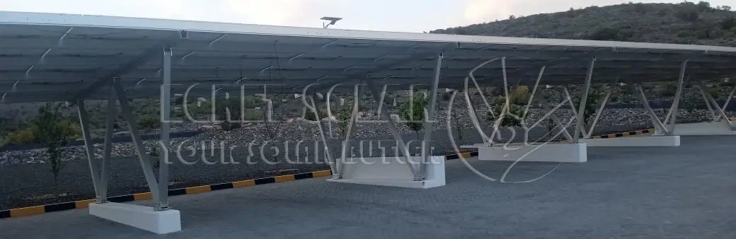 На фото: сонячна алюмінієва система навісу для автомобіля