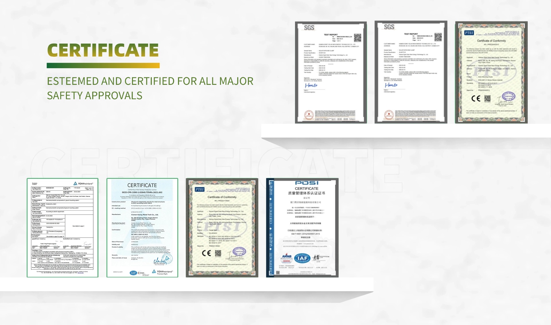 Компанія Xiamen Egret New Energy Technology Co., Ltd., розташована в мальовничому прибережному місті Сямен,-це високотехнологічне підприємство, що спеціалізується на дослідженні, виробництві, продажу та обслуговуванні нових енергетичних продуктів. Основний бізнес компанії охоплює три сфери: сонячні фотоелектричні системи кріплення, фотоелектричні послуги EPC та системи очищення. Побіцята наданням світових фотоелектричних системних рішень, компанія зарекомендувала себе як провідний постачальник різноманітних фотоелектричних рішень для додатків та надійного партнера для вітчизняних та міжнародних клієнтів.